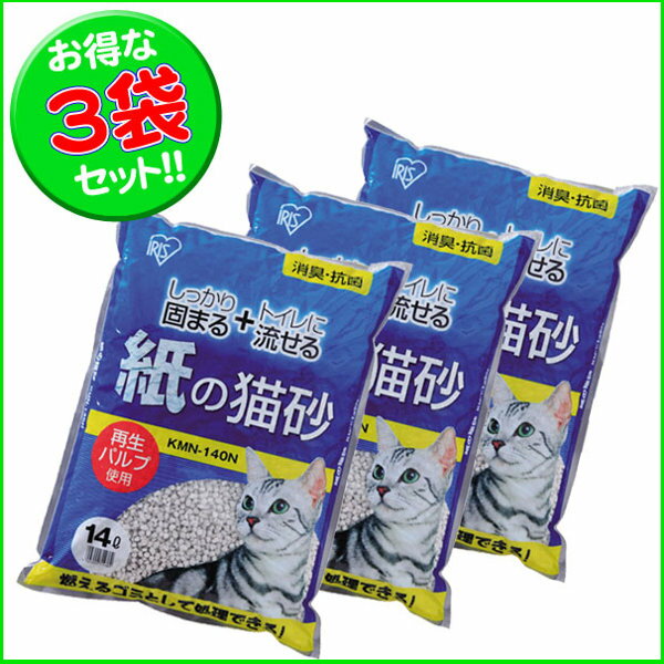 [猫砂]【着後レビューを書いて送料無料】紙の猫砂 KMN-140N 14L×3袋[アイリスオーヤマ 水洗トイレ 燃やせる 燃えるゴミ ゴミ ネコ砂 ねこ砂 猫トイレ 節約 脱臭 固まる]【RCP】